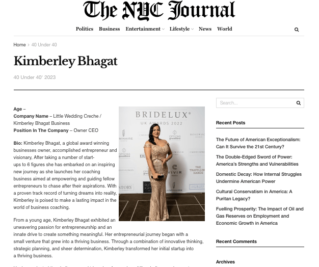 At the tender age of 18, faced with the tragic loss of her mother, she embarked on her entrepreneurial journey, setting up a business despite having no prior experience. Over the course of a decade, she poured her heart and soul into her venture, only to see it crumble. But Kimberley’s unwavering spirit refused to be defeated. Undeterred, she dusted herself off, founded another successful business, and eventually transitioned into online business and then started an events company. Her business ventures have not only flourished but have earned her global acclaim, including prestigious awards. Kimberley’s story is a testament to the indomitable human spirit and the power of persistence in the face of adversity.